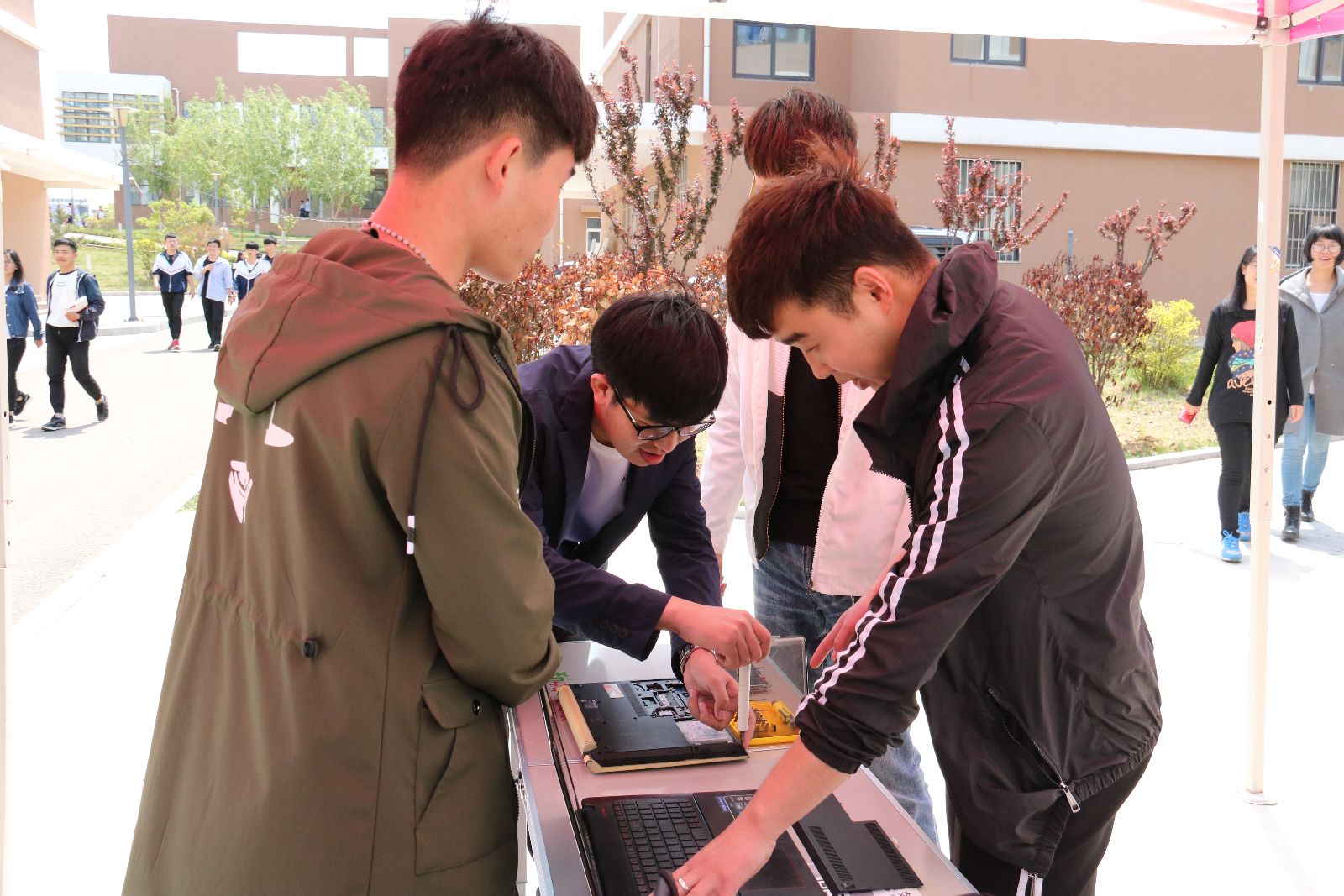 二是开展电脑免费维修活动。海院计算机协会面向全院师生开展了电脑免费维修志愿活动,我院师生既可以在这里免费维修电脑,又可以向计算机协会的成员咨询关于电脑方面的相关知识。计算机协会的成员还带领同学们亲自动手拆开电脑,让他们深入了解电脑的内部构造,让电脑不再有神秘感,整场活动氛围异常活跃。