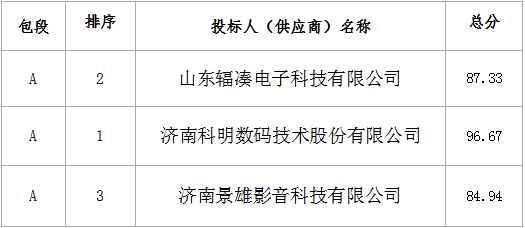 本项目(包段)按照综合评分法评审,排序第一的投标人为本项目的中标人,其余投标人均为未中标人。各投标人综合得分由高到低排序如下: