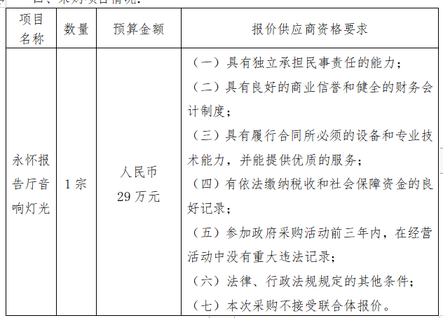 二、项目名称:永怀报告厅音响灯光