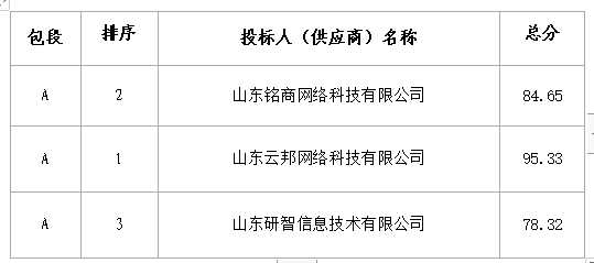 本项目(包段)按照综合评分法评审,排序第一的投标人为本项目的中标人,其余投标人均为未中标人。各投标人综合得分由高到低排序如下: