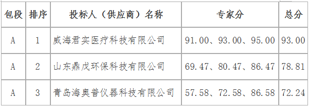 本项目(包段)按照综合评分法评审,排序第一的报价供应商为本项目的成交供应商,其余报价供应商均为未成交供应商。各报价供应商未成交的原因为:山东鼎戊环保科技有限公司、青岛海奥普仪器科技有限公司评审得分较低(产品技术指标评审点、业绩评审点等评审因素不占优势)