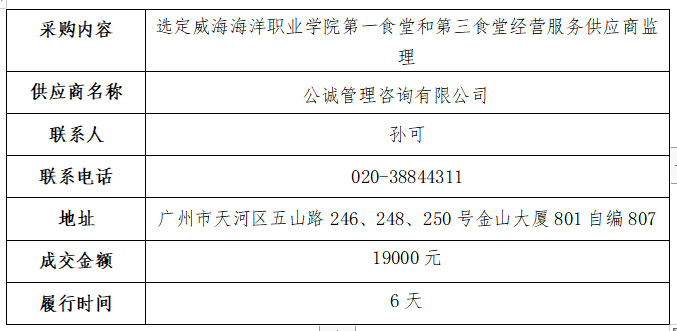 一、采购项目名称:选定威海海洋职业学院第一食堂和第三食堂经营服务供应商监理