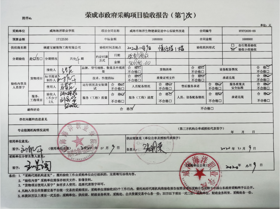 一、合同名称:威海海洋生物健康促进中心实验室改造项目