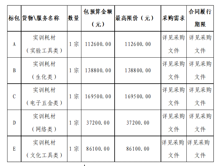 项目名称:实训耗材(实验工具类、生化类、电子五金类、网络类、文化工具类)