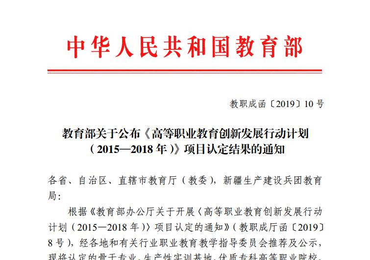 日前,教育部印发《教育部关于公布< 高等职业教育创新发展行动计划(2015-2018年)>项目认定结果的通知》(教职成函﹝2019﹞10号),我院水产养殖技术、工业机器人技术和电子商务3个专业通过骨干专业项目认定。这是我院办学史上首次有3个项目被列为国家级项目,标志着我院的内涵建设工作取得新的重大突破。