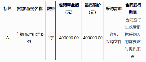 项目名称:车辆临时租赁服务