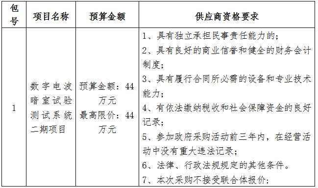 二、项目名称:数字电波暗室试验测试系统二期项目
