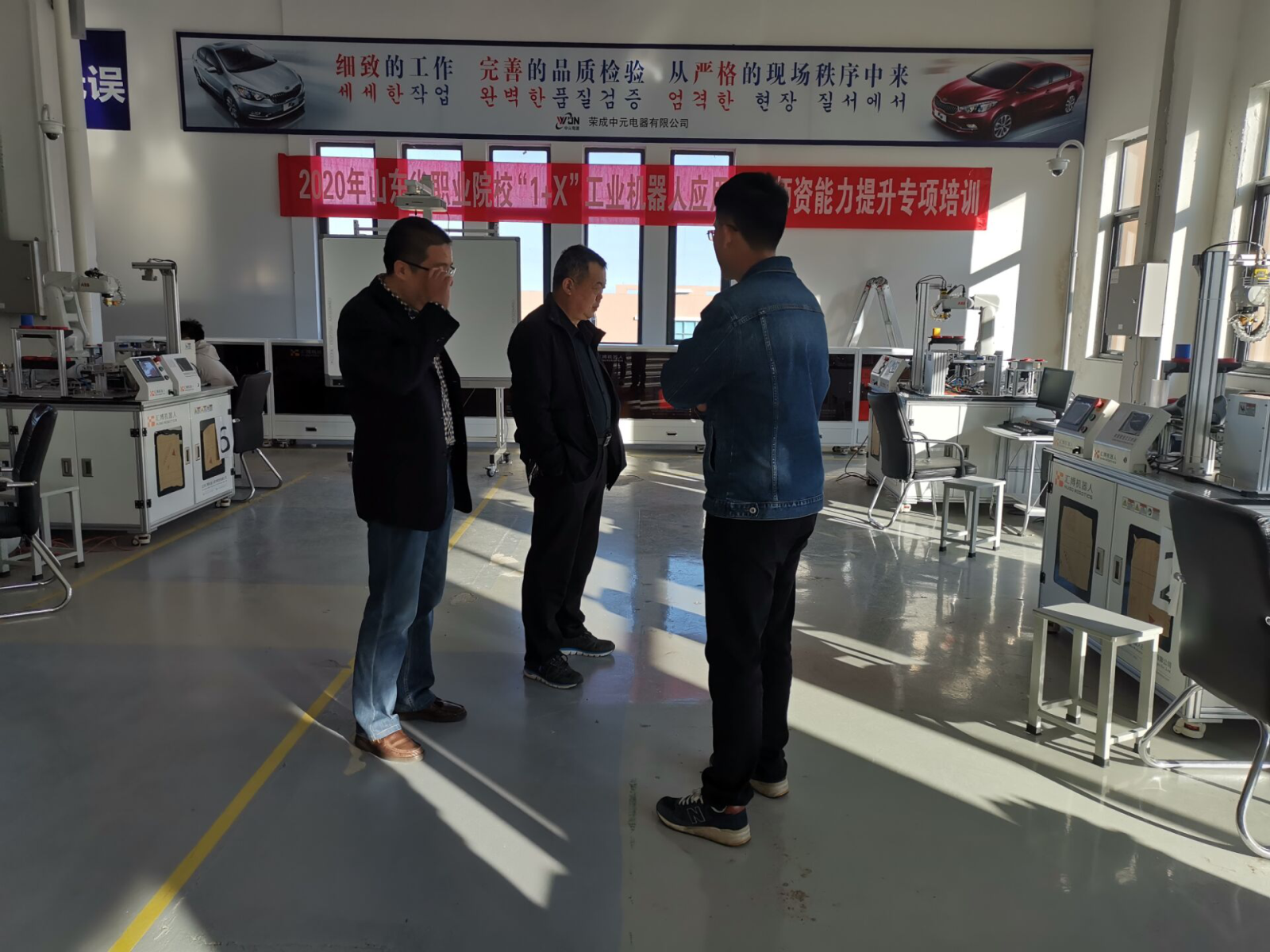2020年11月11日,受威海海洋职业学院机电工程系邀请,文登威力工具集团党委副书记滕卫兵、总工齐鲁首席技师王胜忠等一行四人到我系参观指导工作。先后参观了先进自动化生产线、无人机综合实验室、人工智能和智能机器人实验室、3D打印和逆向设计实验室、增减材数字创客中心、西门子综合实训中心等实训设备和实验室。