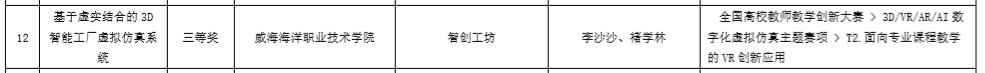 学院机电工程系燕居怀、丛帅、张凯教师团队的船舶零件智能制造单元仿真与展示系统作品荣获赛项一等奖,李沙沙、褚学林教师团队的基于虚实结合的3D智能工厂虚拟仿真系统作品荣获赛项三等奖。