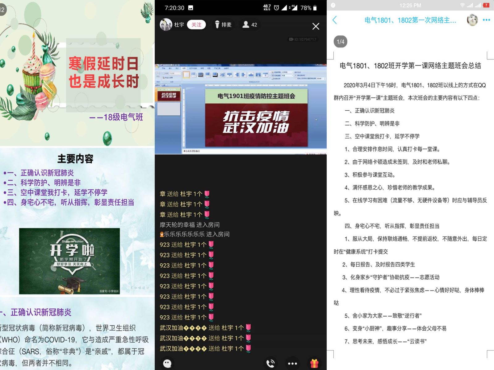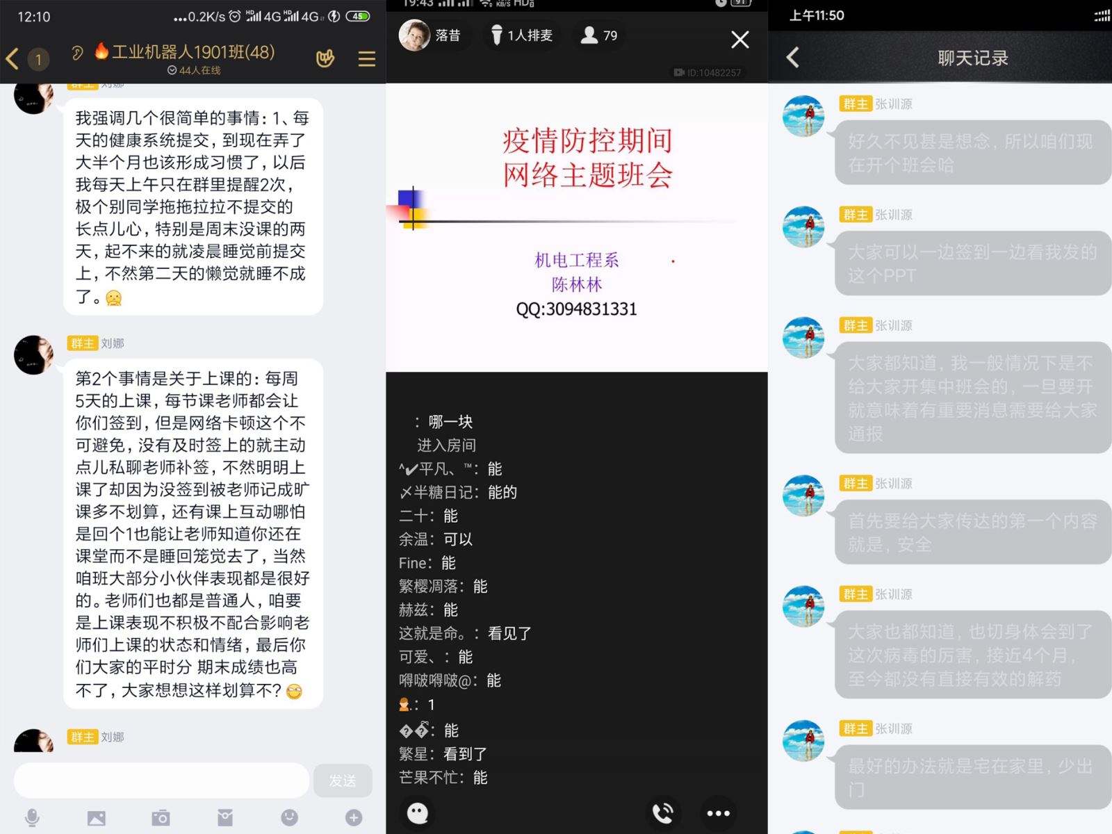为深入贯彻落实习近平总书记关于新型冠状病毒肺炎疫情防控的重要指示精神,将线上教学、学生思想教育转化为支持防疫斗争的强大力量,机电工程系于3月4日-6日在全系范围内组织各班级开展网络主题班会活动。