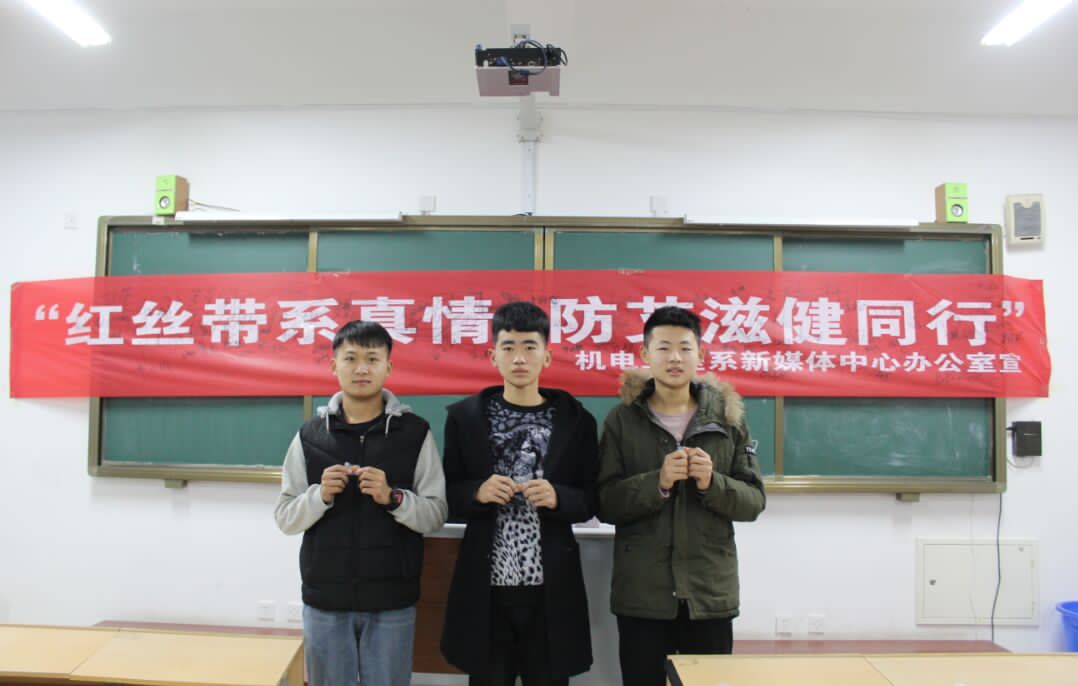 预防艾滋,平等友爱,携手共奏人生美好乐章。为不断推进学校艾滋病防治工作,营造师生积极参与艾滋病防治工作的良好氛围,11月26日,机电工程系新媒体中心开展了以“红丝带系真情,防艾滋健同行”为主题的艾滋病日宣传活动。