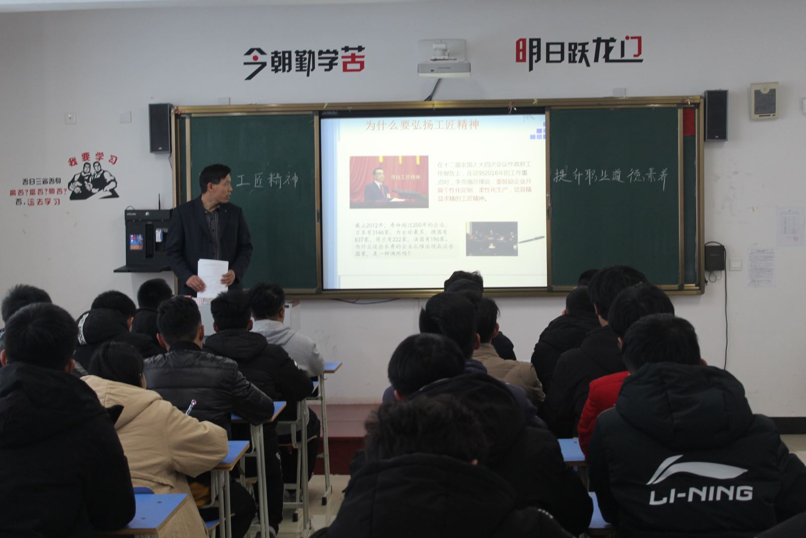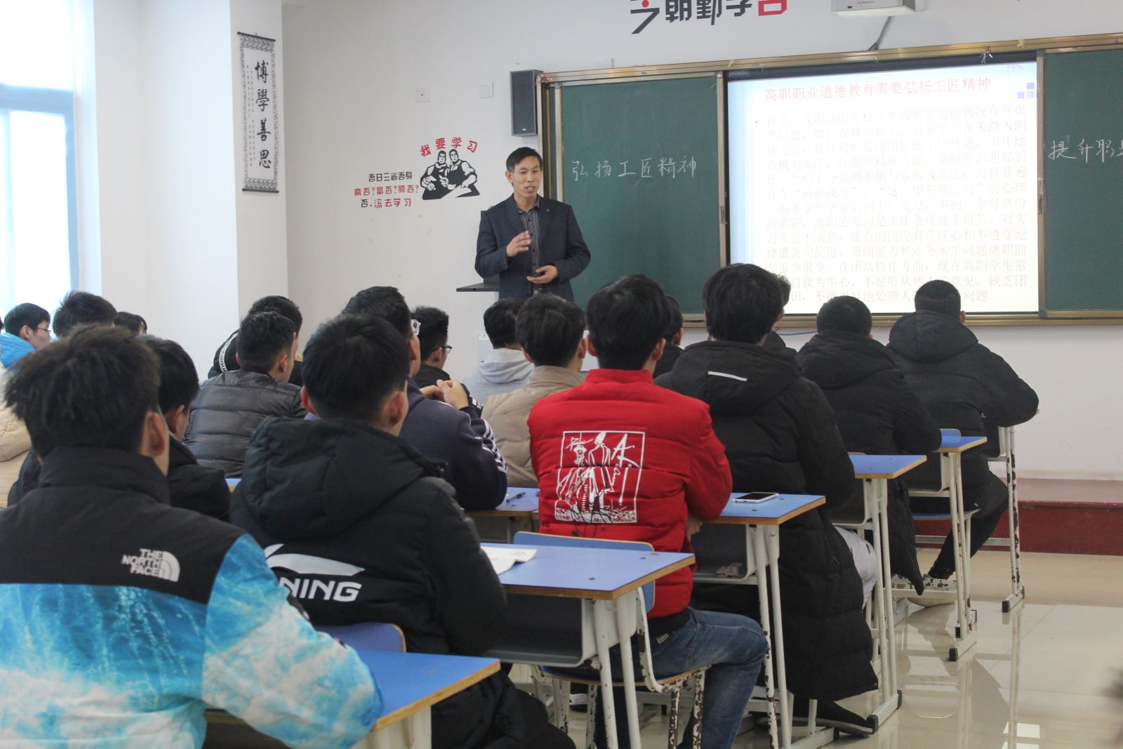 “拼搏奉献,大力弘扬劳模精神和工匠精神,在为实现中国梦的奋斗中争取人人出彩”,习近平总书记的话语振奋着每一位工匠人的心,他们是拼搏的意志,他们是大国工匠的精神。为深入贯彻落实习近平总书记在思想政治理论课教师座谈会上的讲话精神,营造学习工匠精神的氛围,强化学好技能的意识,12月19日,机电工程系燕居怀教授在明润楼401教室,以“弘扬工匠精神,提升职业道德修养”为主题,为同学们讲授了一堂丰富生动的思政课。
