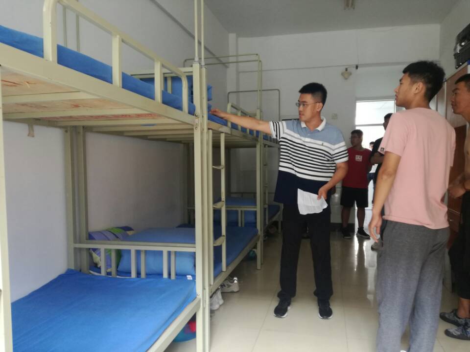 为教育和引导学生养成一个良好的卫生和生活习惯,不断提升个人核心素养,共创整洁文明的住宿和生活环境,9月12日上午,机电工程系学工负责人蔡喜光老师来到新生宿舍现场,带领学生会干部以及各班级专兼职辅导员对新生宿舍内务进行指导与检查。