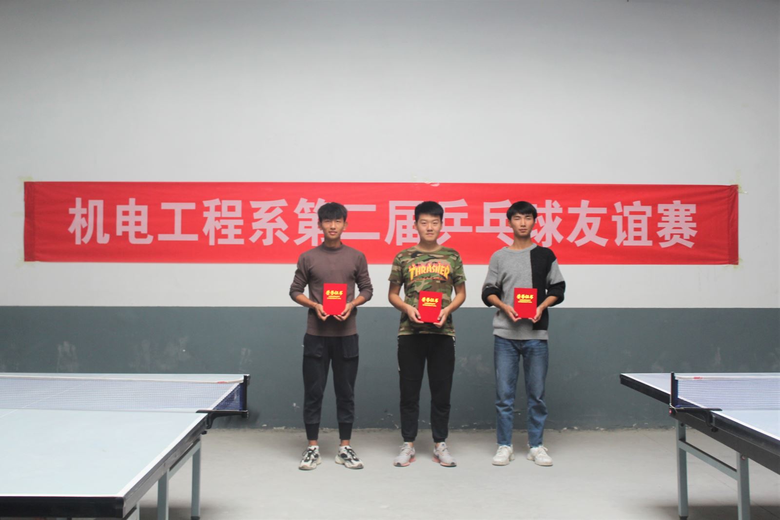 在我系信息宣传部和体育部的组织下,赛场气氛十分活跃。本次比赛采用三局两胜淘汰制比赛方式,在整个比赛过程中,全体队员秉承着“友谊第一,比赛第二”的竞赛精神和“公平、公正、公开”的原则,相互切磋、相互交流,展示了我系学子们顽强拼搏、奋勇争先的新面貌新风采。直拍、横拍、扣球、旋转球、弧线球等一一成为比赛的亮点,喝彩声此起彼伏,掌声不断响起。最后,鲁兴源同学获得冠军,翟浩然同学获得亚军,穆国超同学获得季军。