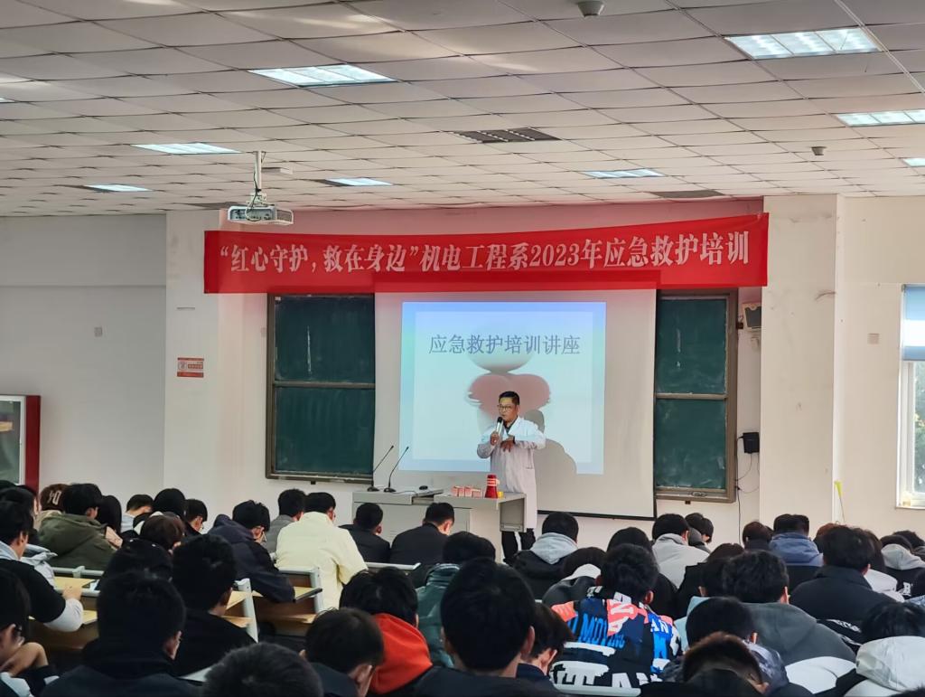 为提高校园师生的心肺复苏知识的知晓度、能更好的对意外情况作出正确的处理方式、增强应急救护处理能力。11月15日,机电工程系邀请荣成市崂山街道卫生院医务科主任王宁在明润楼101教室为师生开展以“红心守护,救在身边”为主题的应急救护知识讲座。