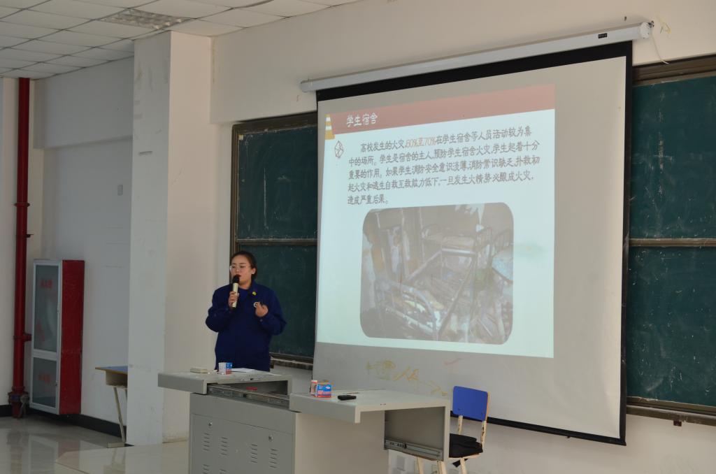 讲座过程中,张参谋从重视消防工作、预防校园火灾、强化灭火减灾能力等3个方面,紧紧围绕懂风险、会报警、会疏散、会灭火这一主线,深入浅出地讲述消防安全的重要性,着重对涉及校园消防安全的火灾案例、法律责任、常见隐患和灭火器材使用进行了详细讲解。