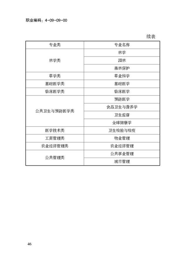 注:1、相关职业:园林植物保护工程技术人员、进出境动植物检验检疫人员、卫生检疫人员、植物保护技术人员、园艺技术人员、疾病控制医师、公共卫生医师、公卫检验技师、消毒技师、物业管理员、草地监护员、野生植物保护员、园林绿化工、草坪园艺师、公共卫生辅助服务员、护林员、农业技术员、农作物植保员、林业有害生物防治员、动物疫病防治员、动物检验检疫员。