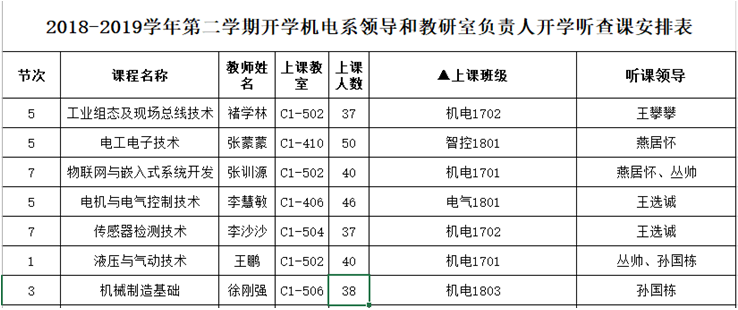 (一)各级领导干部及教学管理人员深入课堂对2018-2019学年第二学期开学进行听查课,现将具体事宜通知如下: