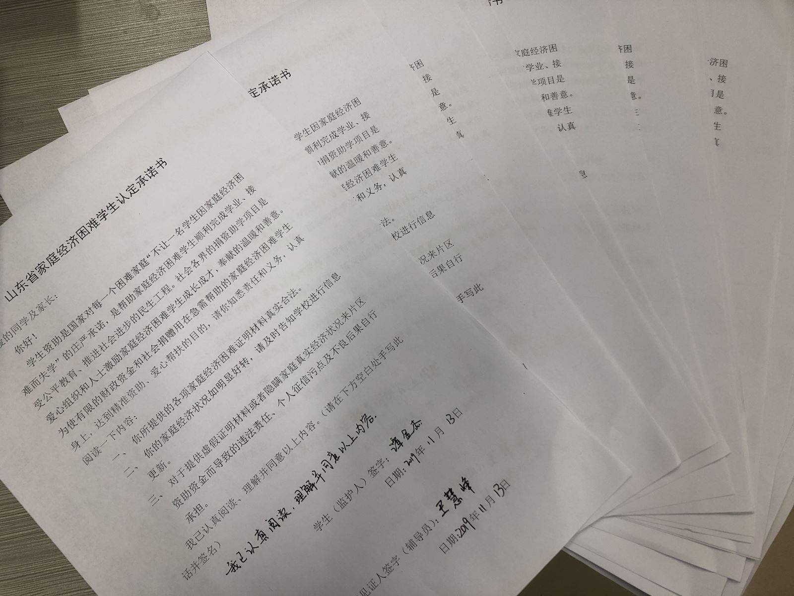 主题教育活动中,辅导员老师重点讲解了各项奖助学金实施的背景和目的,使学生进一步了解获得和合理使用奖助学金的意义所在。严格要求受资助的学生科学合理使用奖助学金,把钱花在刀刃上,促进自身成长成才;要求受资助所在班级的班委,严格执行国家、省和学校的各项要求,不得以任何理由侵占、挪用和平分奖助学金;同时要求受资助学生所在班级的同学,不得以任何理由要求获得奖助学金的同学捐赠、请客吃饭等。随后,同学们纷纷签下承诺书,表示要正确认识奖助学金的意义和作用,诚实守信,自觉接受学校、老师、同学的监督,努力奋斗,积极向上,做一名德智体美全面发展、品学兼优的学生,以优异的成绩回报国家、社会以及学校的关心和爱护。