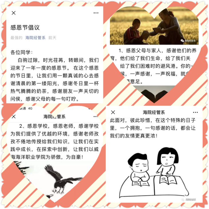 为增强同学们的感恩意识,引导学生懂得感恩、学会感恩,感恩节期间,经济管理系开展了以“感恩有你·感恩在心”为主题的感恩教育活动。