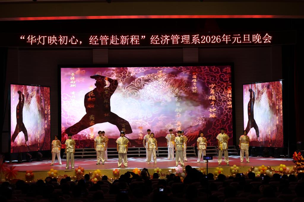 银蛇辞旧岁,金马迎新春。为庆祝2026年元旦佳节,丰富师生校园文化生活,凝聚系部发展合力,12月21日,经济管理系“华灯映初心,经管赴新程”元旦联欢晚会在学院永怀报告厅隆重举行。系负责人及辅导员、任课老师与700余名经管学子欢聚一堂,共赴青春盛宴,同庆美好佳节。