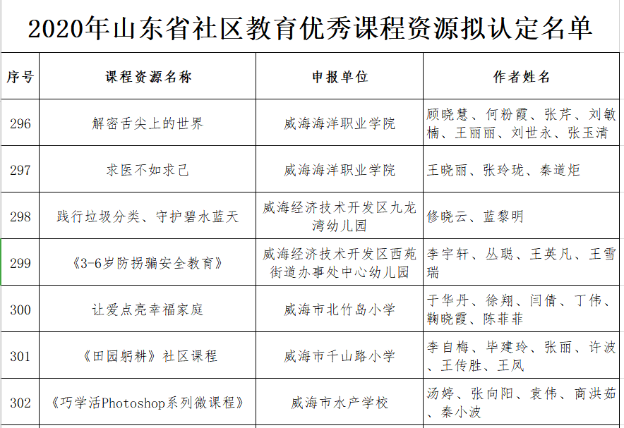 近日,山东省教育厅发布了《2020年山东省社区教育优秀课程资源遴选结果公示》,我院思政基础部王晓丽老师主持的《求医不如求己》和食品工程系顾晓慧老师主持的《解密舌尖上的世界》通过遴选,获批山东省社区教育优秀课程资源。
