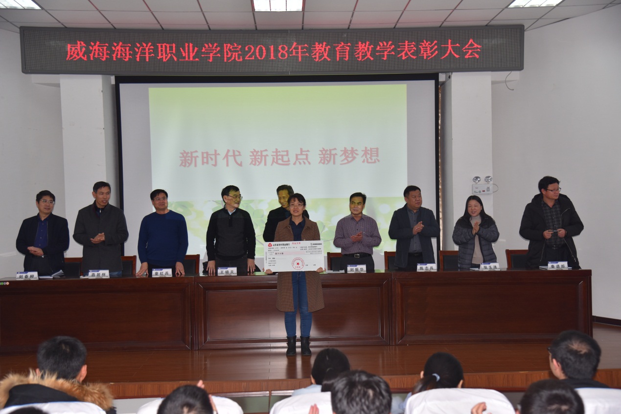 根据《威海海洋职业学院专业技能竞赛管理与奖励办法(试行)》(威海职院字〔2018〕37号)、《威海海洋职业学院高水平体育运动队管理暂行办法》(威海职院字〔2017〕35号)和《威海海洋职业学院教育教学奖励办法》(威海职院字〔2018〕21号)文件精神,经院长办公会研究决定,于1月4日下午,召开了教育教学奖励表彰大会,表彰在2018年各类竞赛中取得优异成绩的师生、省教学名师和省级教学团队。院长助理丛建国、各系部负责人、相关行政处室负责人、获奖师生及代表参加了会议。