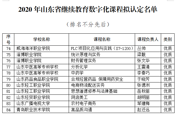 近日,山东省教育厅发布了《2020年山东省继续教育数字化课程遴选结果公示》,机电工程系丛帅老师主持的《PLC项目化应用与实践(S7-1200)》通过遴选,获批山东省继续教育数字化优质课程。本次申报全省共遴选出40门精品课程,60门优质课程,主要是以公共课程、专业课程以及文化素质教育等课程为主,要求适合成人在职人员继续教育学习需求。