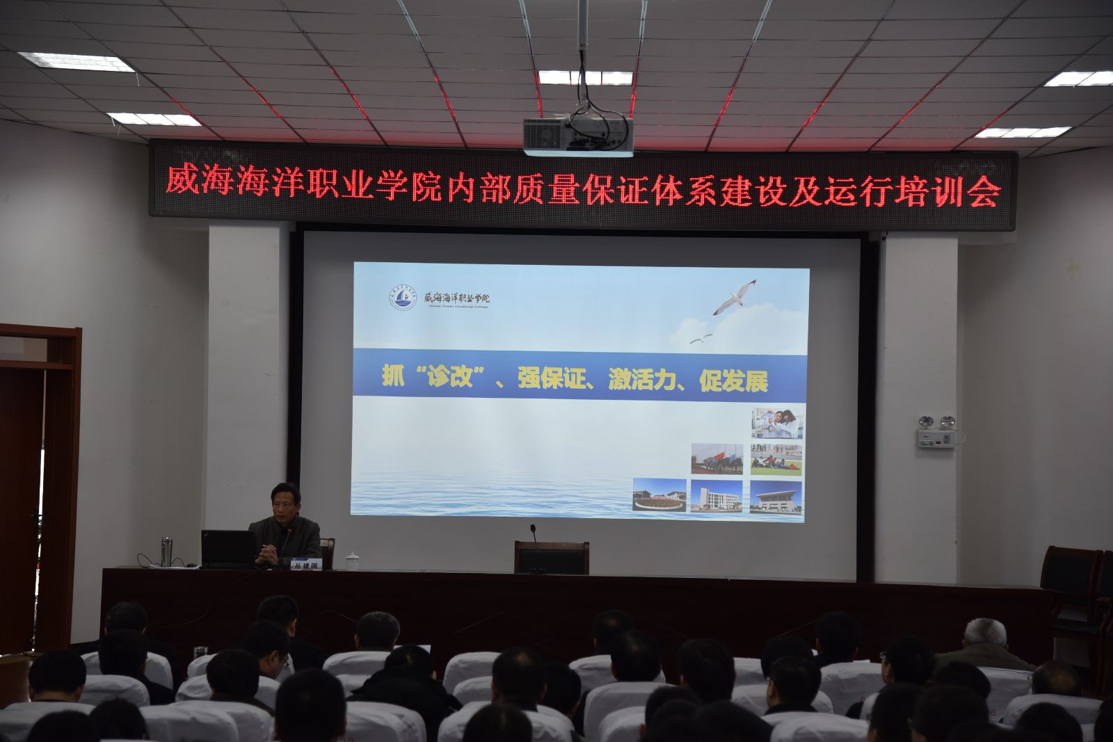2017年1月12日我院在行政楼229召开了内部质量保证体系建设及运行培训会,全体领导班子成员及教职工参加了会议。会议由院长助理、质管办主任丛建国主持,院长张宗军出席会议并讲话。