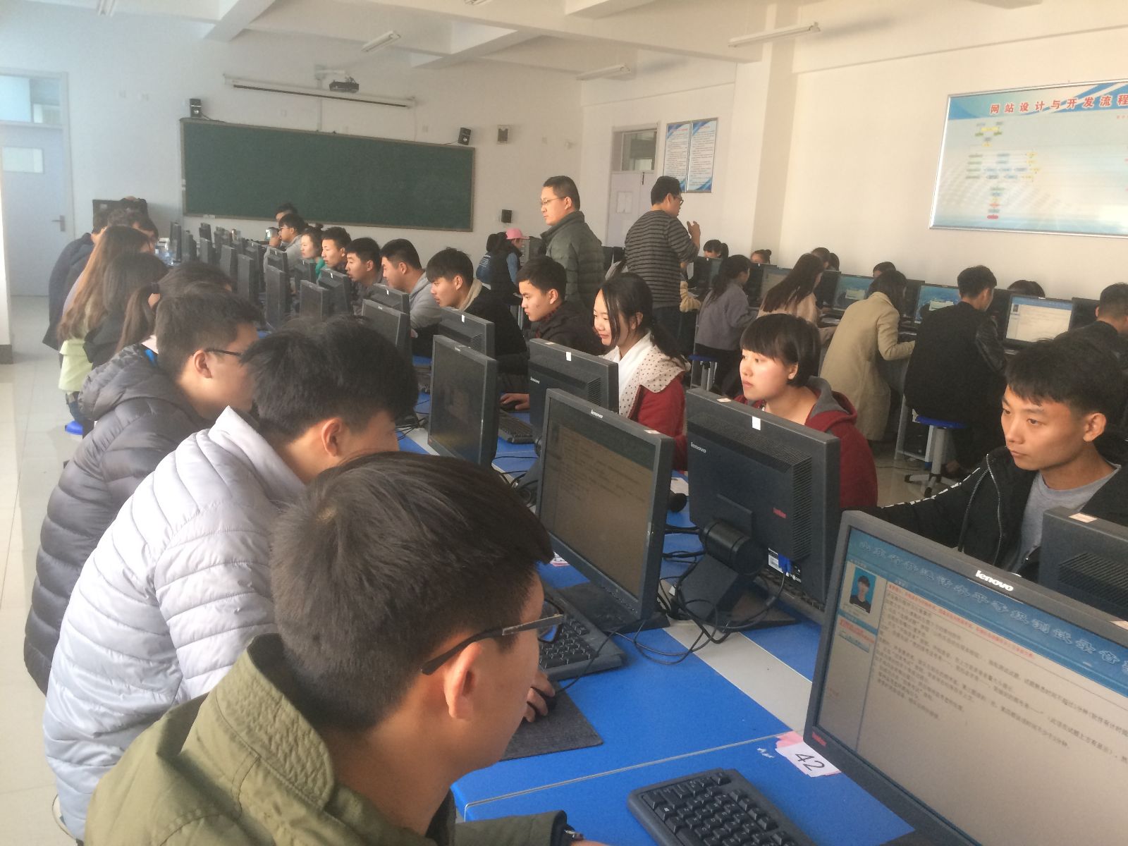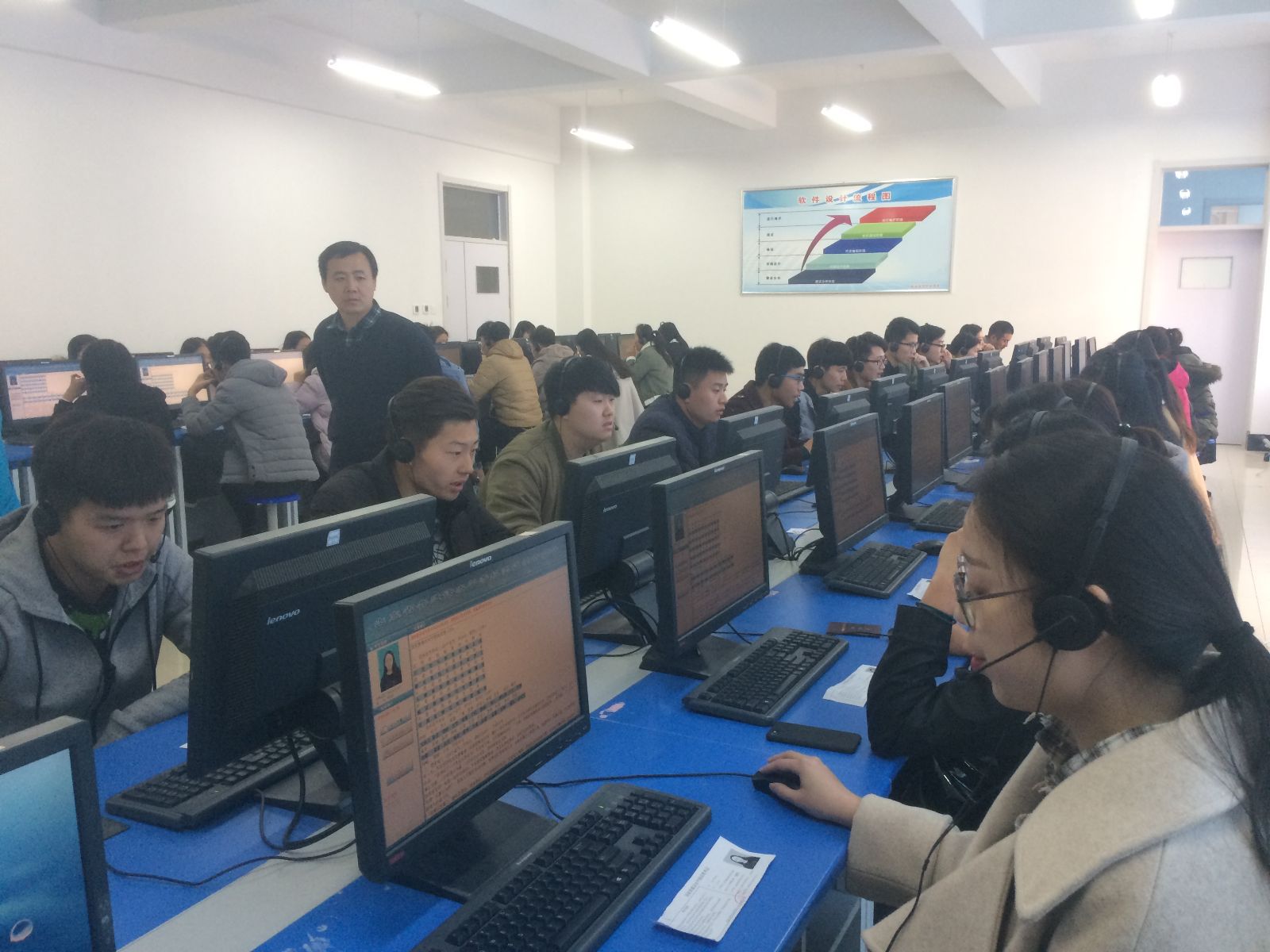 上午7点50分测试还未正式开始,参与测试工作的老师及工作人员就开始了详细的安排。随后,同学们也陆陆续续地进入备考教室并按号坐好。8点20分测试正式开始,同学们按照场次有序进行候场及测试, 18点左右23场测试井然有序的结束了。至此,首次普通话水平测试工作圆满结束。