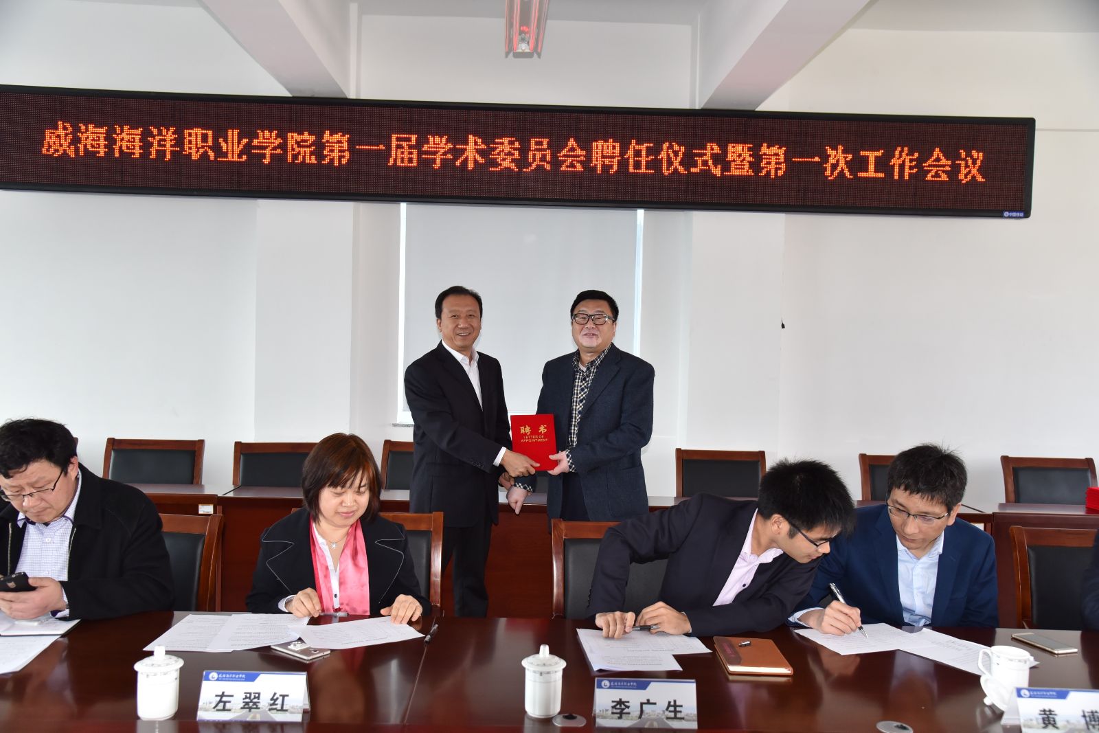 会上,王星淘宣读了《关于成立威海海洋职业学院学术委员会的通知》,李耀华代表学院向第一届学术委员会主任、副主任和委员颁发了聘任证书并与全体委员合影留念。学术委员会主任、院长助理刘胜教授代表全体委员做了表态发言,他感谢院领导班子和广大教职员工对各位委员的信任,表示今后要与全体委员一道,认真执行学术委员会章程,为学院的发展尽心尽力,尽职尽责。