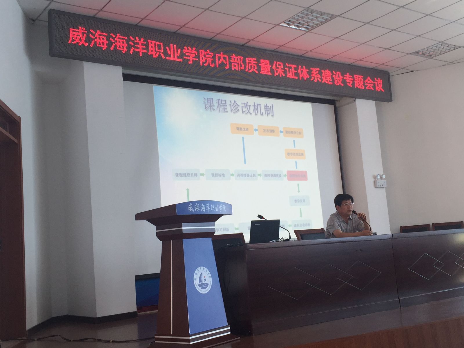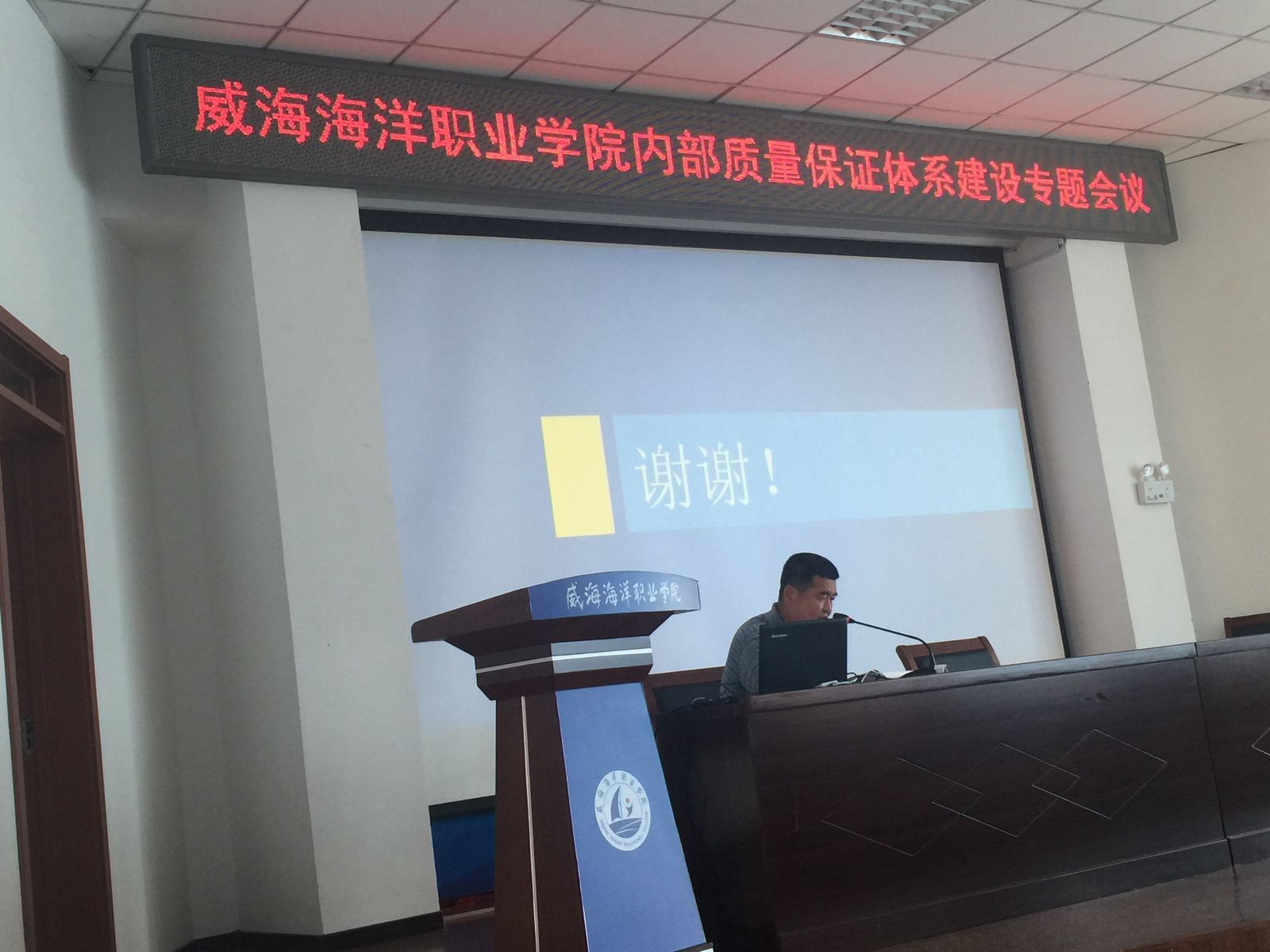 院长助理丛建国作总结讲话。他指出,内部质量保证体系建设是学院本年度重点工作,今天的专题会议既是政策解读会,也是培训和工作部署会。第一,部门负责人是内部质量保证体系建设工作的第一责任人,专业、课程、师资等层面的牵头部门要认真系统地梳理相关工作任务,各系院要密切配合、全面开展内部质量保证体系建设工作。第二,要理念先行,加深对内部质量保证体系建设工作本质和意义的认识,树立先进质量理念。第三,内部质量保证体系建设工作是一种管理模式的变革,由外部监管变为自主保证质量,好认真领会和把握上级文件精神, 紧扣学院发展规划,明确责任主体,让内部质量保证体系建设工作深入人心、人人参与。第四,必须坚持内部质量保证体系建设和日常工作融为一体,各部门要克服困难,将内部质量保证体系建设工作作为部门工作的新起点和新突破,早认识、早行动、早出成效。第五,要加强智能校园管理平台建设,建立面向管理等的信息化系统,将学院各项工作与信息平台结合,实现过程数据实时采集。撸起袖子加油干,通过内部质量保证体系建设,真正做到自我诊断、自我改进,推进学院内涵的全面提升。