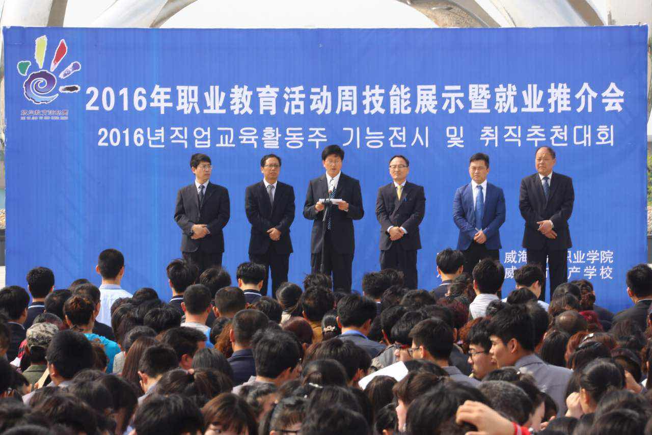 5月12日,我院举办了“2016年职业教育活动周技能展示暨就业推介会”,学院副院长王星淘,韩国莞岛水产高等学校校监李信基,华夏文旅集团总裁助理、人力资源部部长柳军伟,以及学院相关部门负责人参加会议并发言,60余家企业、2000多名师生参加了活动,韩国莞岛水产高等学校代表团、学生家长应邀到会观摩交流。