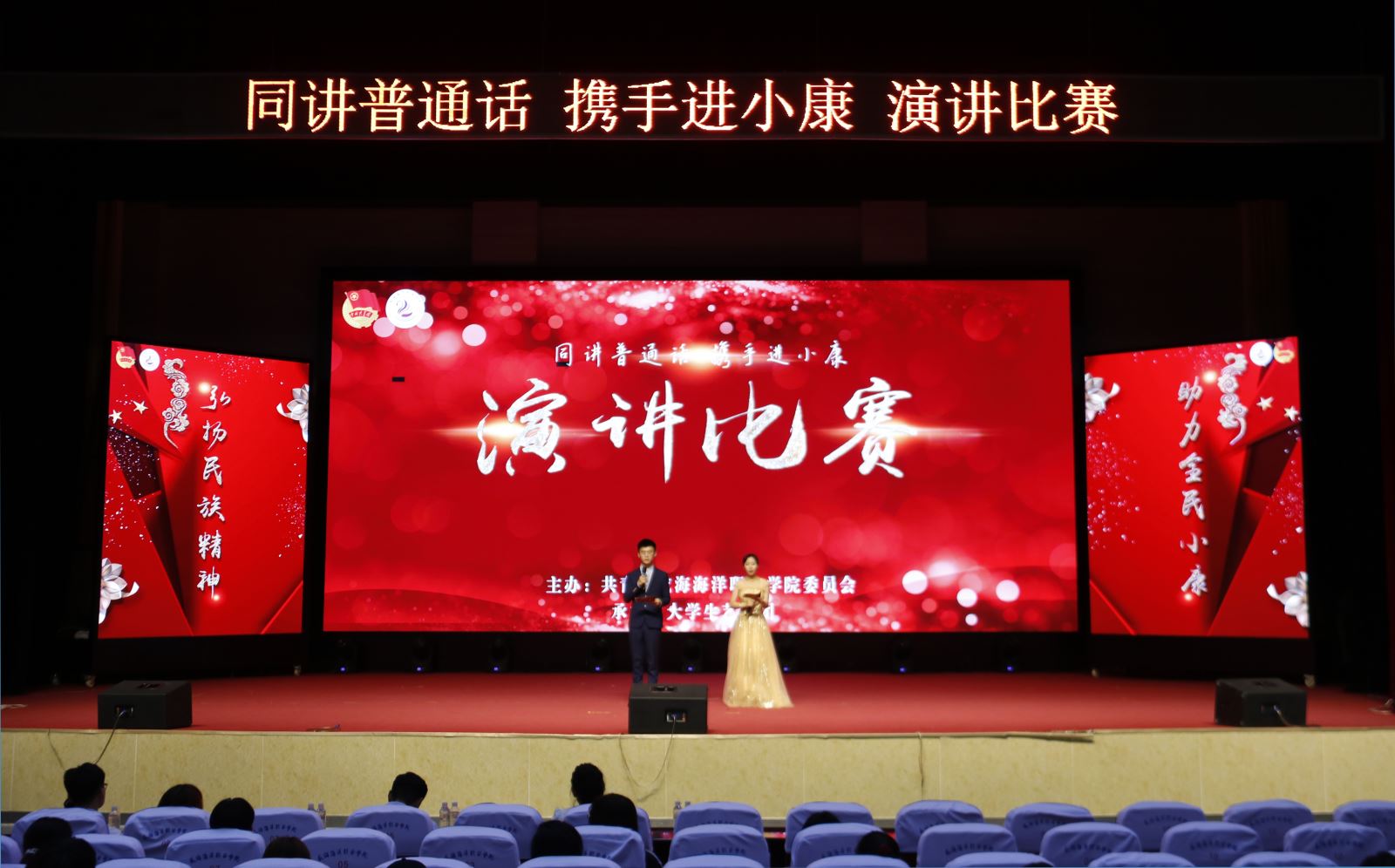 为大力宣传国家语言文字法律法规和方针政策,推广和规范使用国家通用文字,拓展覆盖面,增强实际效果,9月16日下午,院团委在学术报告厅举办了“同讲普通话,携手进小康”主题演讲比赛。本次比赛经过系部层层筛选,来自全院的13名选手紧紧围绕主题,结合自己的心路历程和学习感触,通过声情并茂、生感动人的演讲,阐述了自己对本次推普周活动的深刻理解,通过演讲,讲述了身边的优秀人物事迹在弘扬爱国主义精神、传承优秀传统文化以及脱贫攻坚、建成小康社会中的为民情怀。