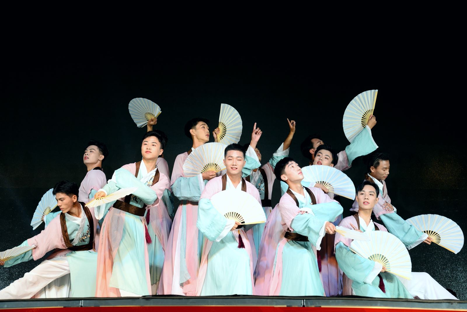 晚会在舞蹈《青春畅想》的欢快气氛中开场。适逢新中国成立70周年,朗诵《共和国的脊梁》体现了海院师生的家国情怀和赤子之心,激励2019级新生将个人理想与国家命运紧密相连;歌曲《向往》、大合唱《当那一天来临+强军战歌》更是唱出了海院青年学生昂扬进取、奋发有为的新时代强音;民族舞《茉莉花》《纸扇书生》古典与现代的刚柔并济,展示了中华民族传统文化的博大精深,现场反响热烈;乐队演唱《无名之辈》传达着年轻人为实现梦想不懈坚持的信念以及无惧挑战的生活态度;歌舞表演《我们都是追梦人》,充满了青春活力,展示了海院学子“我们乘风破浪,举目高眺,心中力量不怕万万里路遥”的追梦精神,晚会现场高潮迭起。最后,全场演员、师生热情挥舞着国旗,高歌齐唱《歌唱祖国》,晚会在同学们热情高涨的欢呼声和经久不息的掌声中落下帷幕。