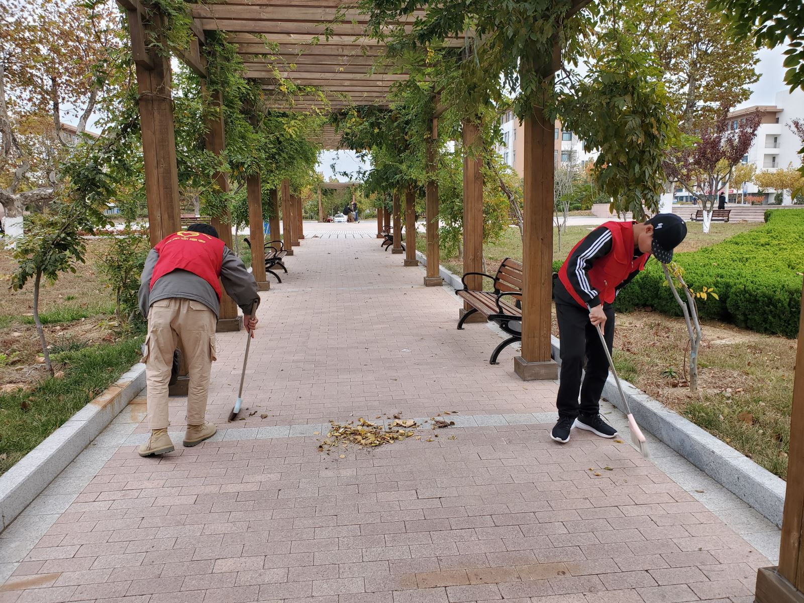 文明见于细节,创建从我做起。瑟瑟秋风中,青年志愿者们不畏困苦,穿梭在责任区的各个角落,拿着扫帚、簸箕等工具,专注而又耐心地整理宣传橱窗,清除草丛、树坑中较难清除的烟头、杂物、废纸、枯树叶等垃圾。经过一个小时的努力,校园内的卫生死角得到了清理,责任区道路干净整洁,宣传橱窗一尘不染,两侧的自行车整齐有序、绿化带里焕然一新。
