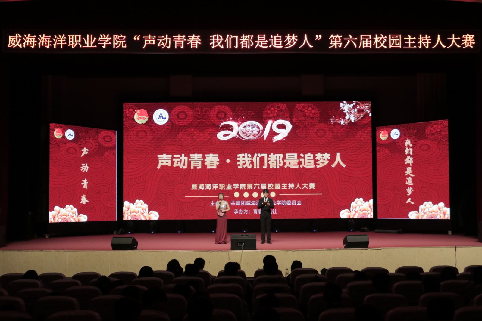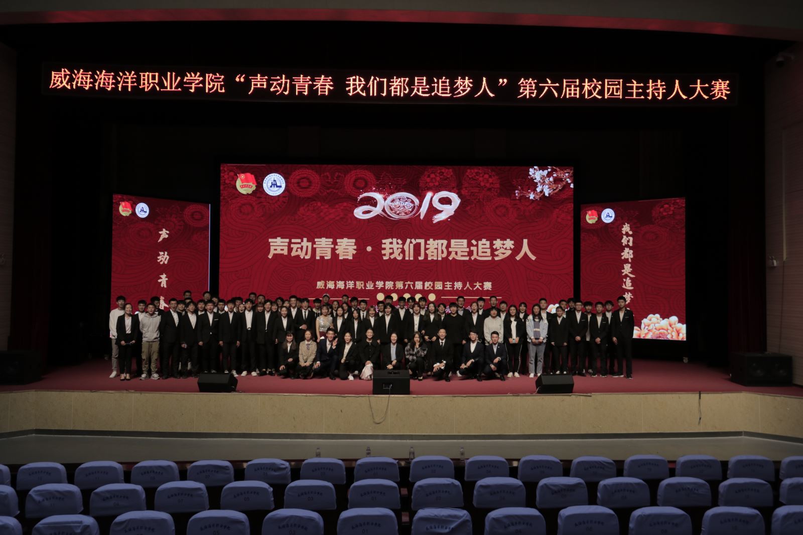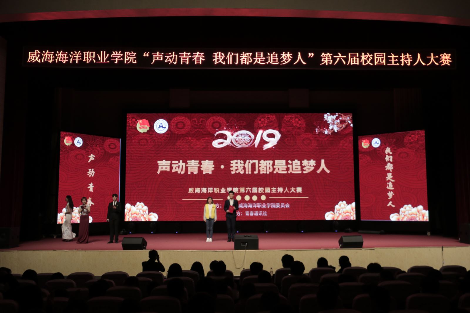 为热烈庆祝祖国七十华诞,弘扬中华优良传统,建设和谐、文明校园,传递青春正能量,提升校园生活文化韵味,选拔和培养优秀校园播音主持人才,11月6日下午,由院团委主办、青春通讯社承办的第六届“声动青春 我们都是追梦人”校园主持人大赛决赛在学术报告厅举行。
