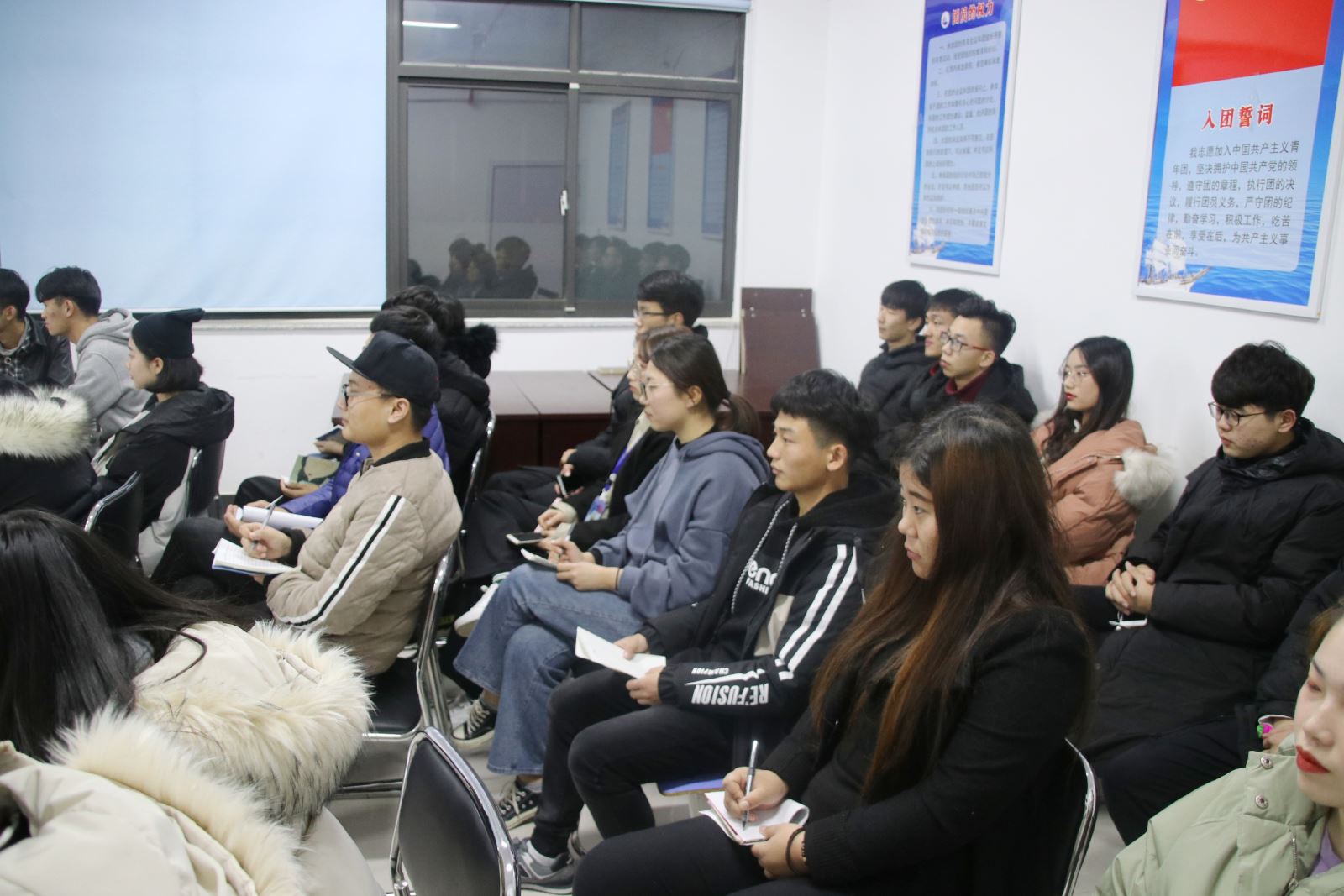 二是开展宪法诵读活动。组织团员青年诵读宪法是青年学生尊重法律、助力推进法治建设的身体力行,选取内容涉及宪法序言、国家性质、国家机构设置以及公民权利义务等。旨在通过对选取的宪法条文的朗诵,了解我国的基本组织形式以及法律所赋予公民的神圣权利与义务。在场学生以饱满热情高声朗诵,也是青年学生推进法治宣传,维护宪法权威的一次实际行动。