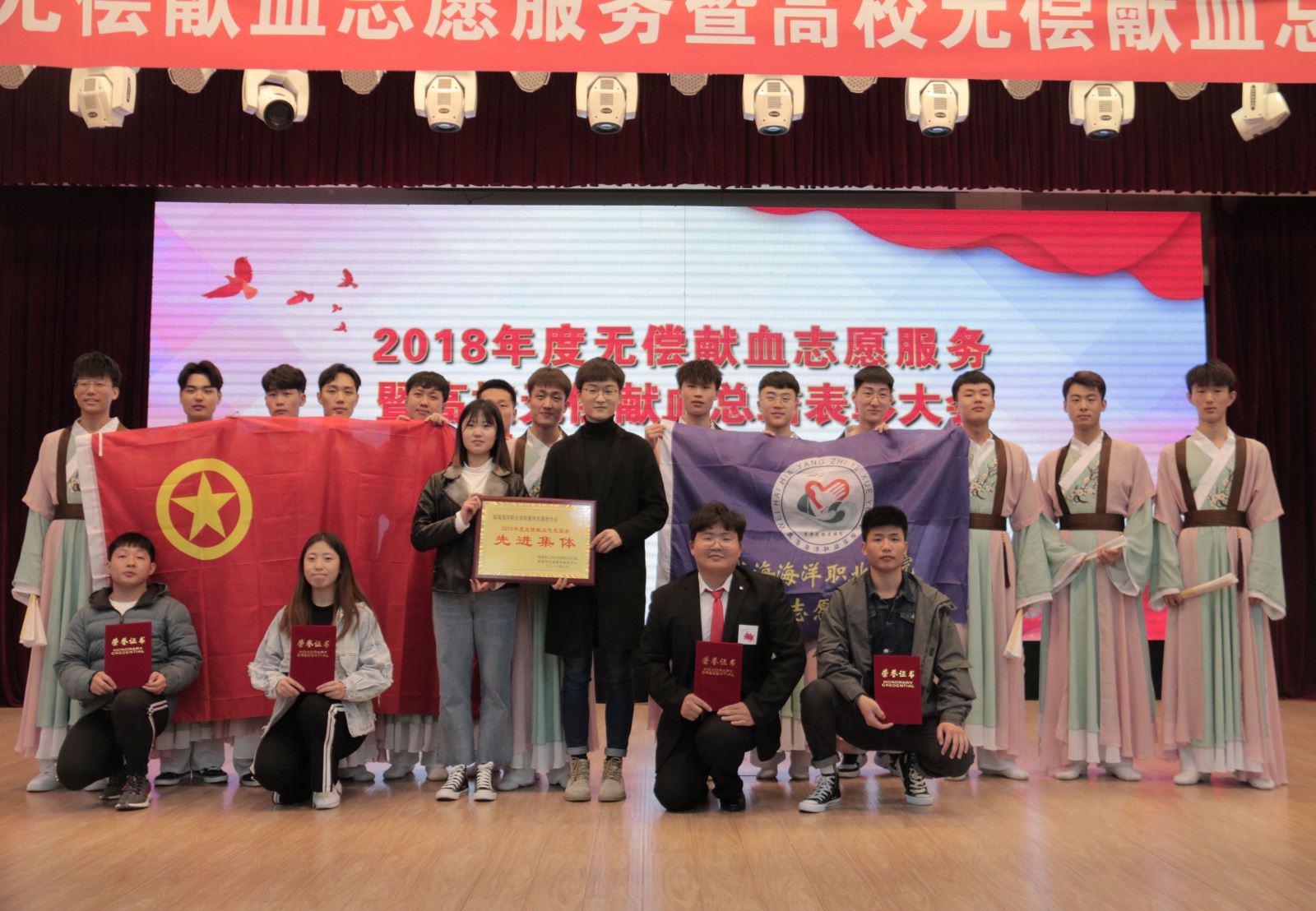 3月31日上午,威海市中心血站召开2018年度无偿献血志愿服务暨高校无偿献血总结表彰大会,大会对2018年度无偿献血志愿服务工作进行了总结和表彰。学院团委连续三年被授予“无偿献血志愿服务先进集体”荣誉称号,并且今年作为典型代表在会做上交流发言。同时,王永坤、卢莹萍、魏传茂、杨正等4名学生被授予“无偿献血志愿服务优秀大学生”荣誉称号。