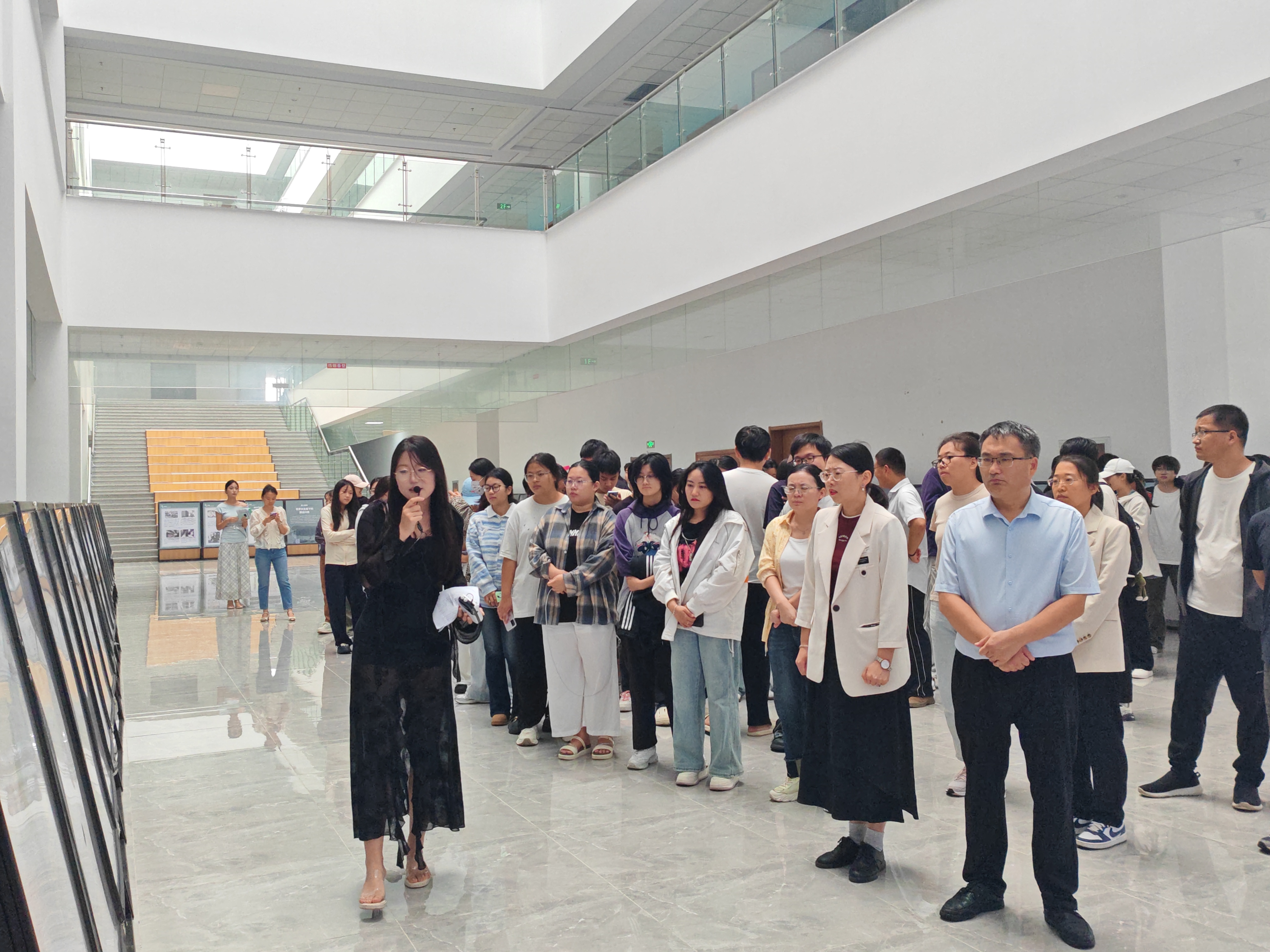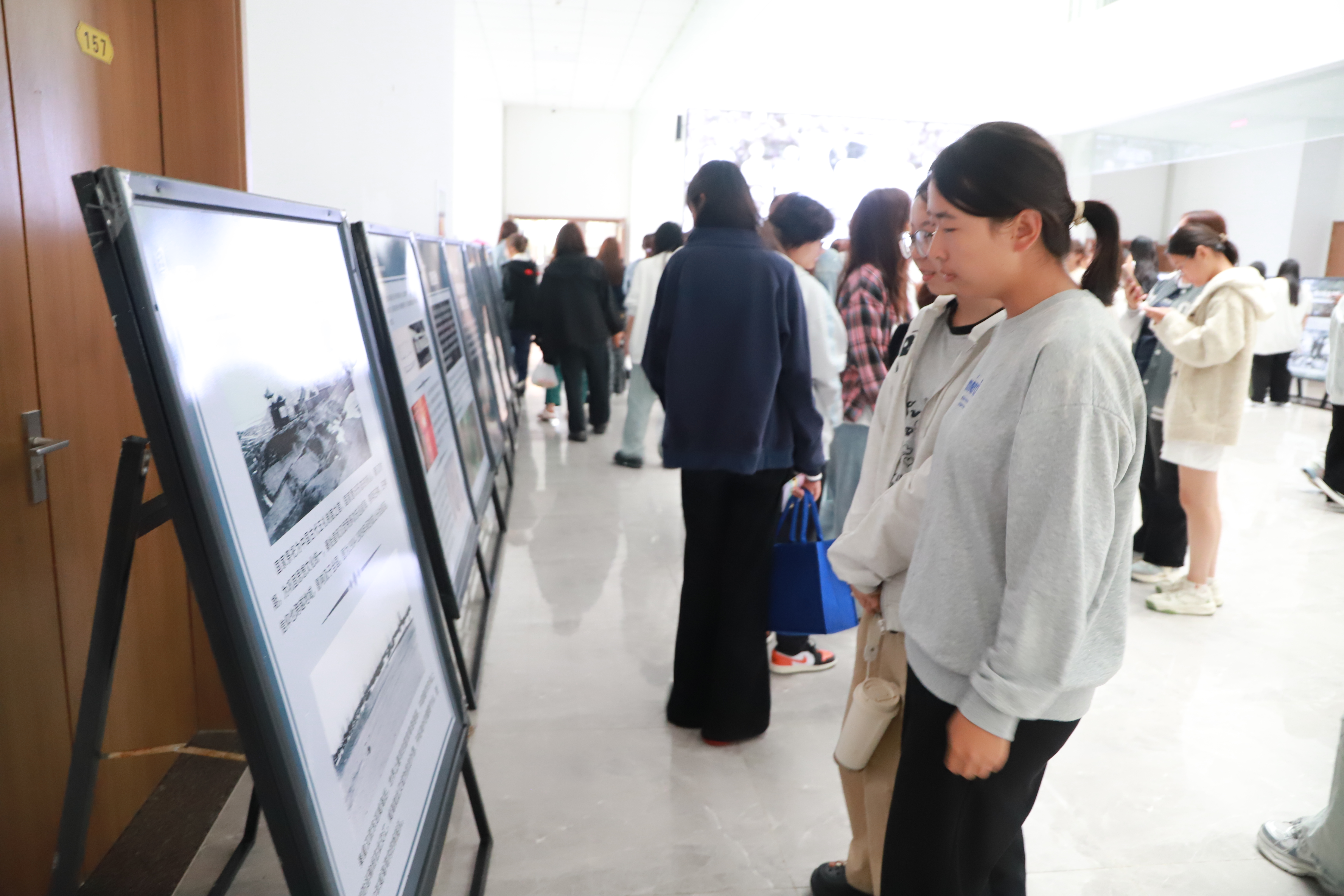 开展首日,学院党委书记吴宏飞等领导班子成员,各处室负责人及师生代表来到展览现场,在讲解员的带领下认真观展,不时驻足凝视展板或低声交流感悟,现场学习氛围浓厚。