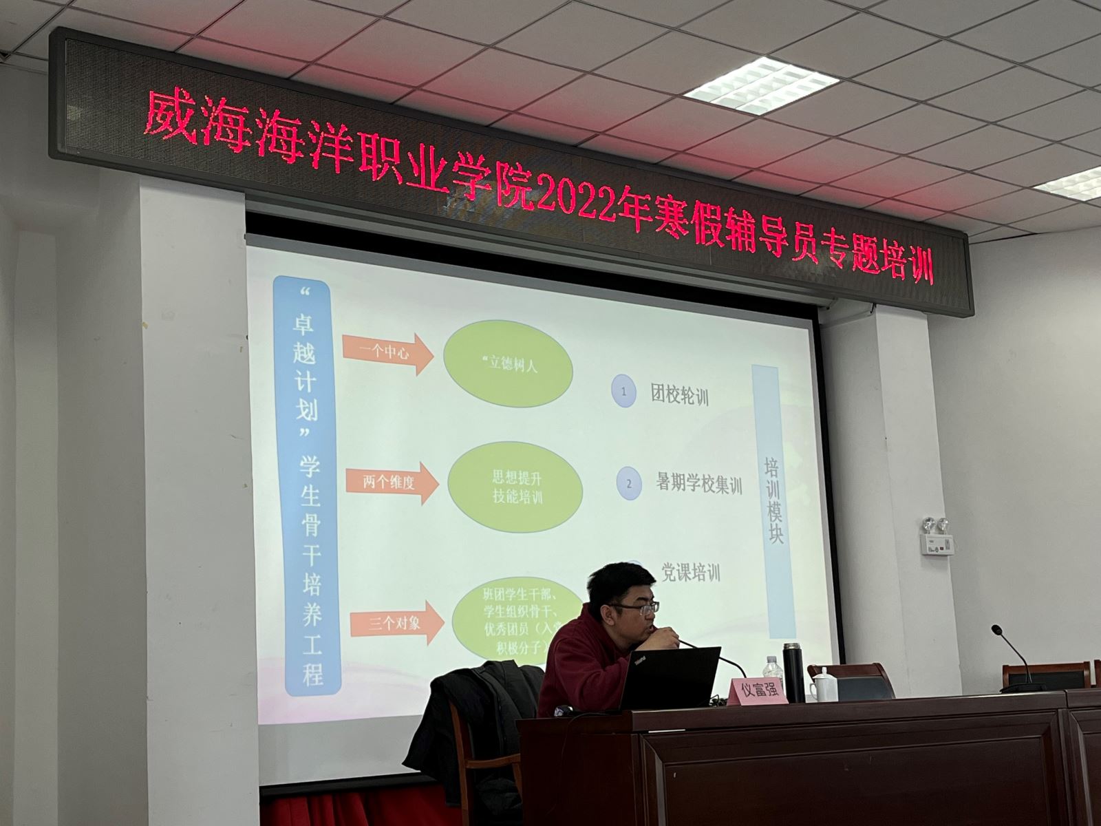 为提升我院辅导员队伍业务素质和研究能力,1月12日至13日,学生处在曜元楼229报告厅举办了2022年辅导员专题培训大会。学工处全体人员,各学院主管学工副书记,全体专、兼职辅导员100余人参加了此次培训。