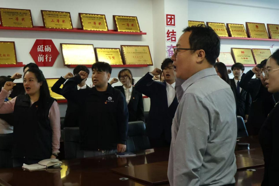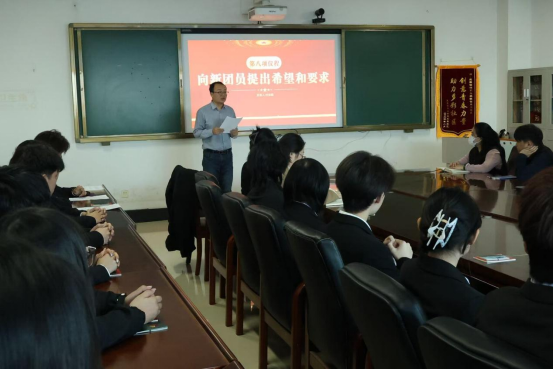 系党总支副书记付宗魁向新团员表示祝贺,并提出三点希望:一是坚定理想信念,将个人追求融入国家发展大局;二是牢记团员身份,以实际行动体现先进性;三是保持学习姿态,锤炼品格、增长才干,让青春在奉献中焕发光彩。
