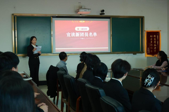 在系学生会组织部副部长闫舒的领誓下,全体新团员面向团旗庄严宣誓:“我志愿加入中国共产主义青年团,坚决拥护中国共产党的领导……”誓言铿锵,信念坚定,展现了信工青年听党话、跟党走的政治自觉和青春担当。宣誓结束后,系学生会组织部部长吕明俊宣读了《团章》中关于团员义务和权利的相关内容。