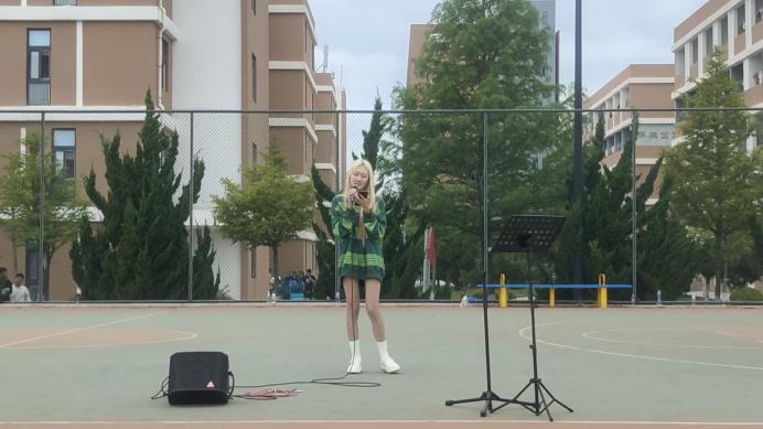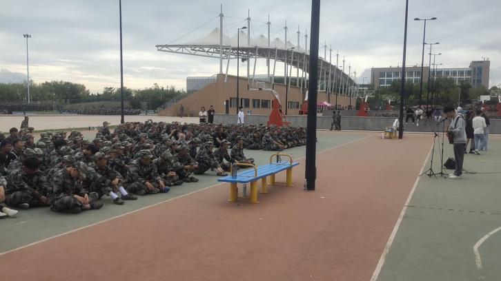 9月19日上午,文艺部的成员们在篮球场紧锣密鼓地进行准备工作。台下连队整齐划一地排开,待所有同学就位后,便开始表演。一首rap,三首音乐,两个舞蹈,让辛苦训练的新生在这个炎热的夏季中仿佛舒缓了下来。