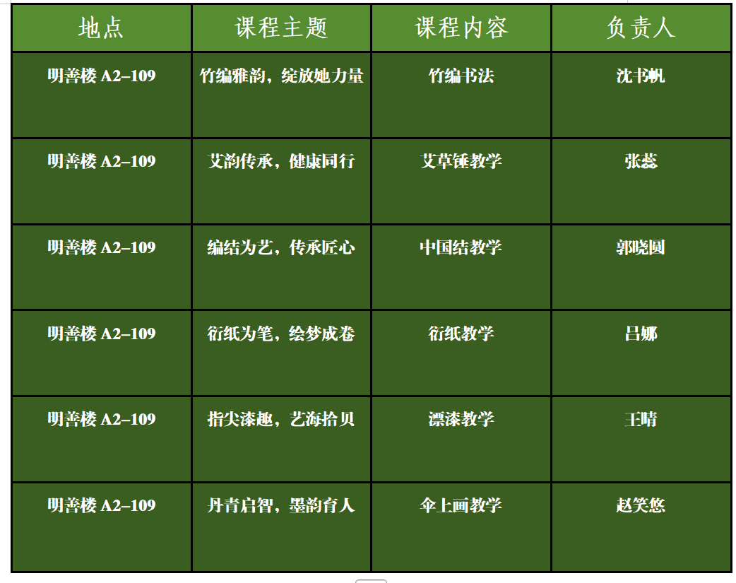 本学期“小信学堂”聚焦非遗技艺传承与创新,累计开展6期手作课程,参与学生达265人次。课程体系持续优化,新增“漂漆艺术”“伞上绘画”两大主题,与原有竹编书法、中国结、艾草锤、衍纸工艺形成多元矩阵。
