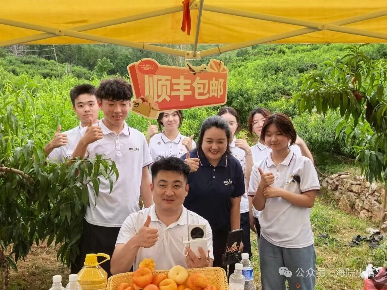 助农直播间,蜜桃鲜到家。下午,志愿服务队转场蒙阴北太平村,在村支书刘元彬书记的热情接待与带领下,投身助农直播实践。直播间里,志愿者们化身“带货主播”,不仅详细介绍蒙阴蜜桃的生长环境、口感特点,还现场表演唱歌以活泼有趣的互动吸引观众驻足下单。经过数小时的努力,直播累计销售额达5000余元,成功卖出蒙阴蜜桃、小米、粉条等当地特色农产品一百多箱,有效拓宽了乡村好物的销售渠道。