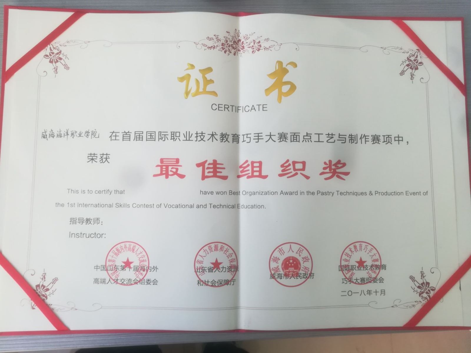 2018年10月26日-29日,国际职业技术教育巧手大赛决赛在威海举行。我系食品营养与检测专业学生张虎获得个人一等奖的优异成绩,何粉霞老师获得优秀指导教师荣誉称号,我院获得最佳组织奖荣誉称号。