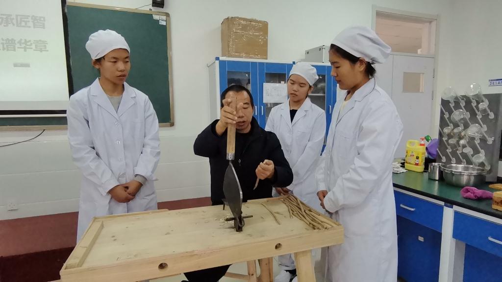 技艺展示:让“建昌帮”绝技在黄海之滨绽放。本次活动的一大亮点是叶喜德教授亲自演示并讲授的“建昌帮”中药炮制技艺。在实训室里,叶教授将这一源自江西的古老非遗技艺带到了威海之滨。他娴熟地展示了建昌帮特有的刀具等核心技法,并详细讲解了辅料应用与火候掌握的独到之处。