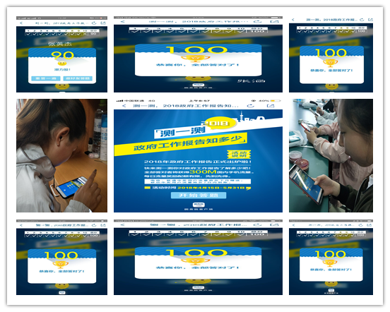 “测一测,2018政府工作报告知多少”在线学习答题活动的顺利举办激发了海院学生关注和了解国家大政方针的积极性,进一步促进了大学生自觉关注社会发展、积极进行社会参与、心系社会民生建设,激发了青年人的主体性和“主人翁”意识。
