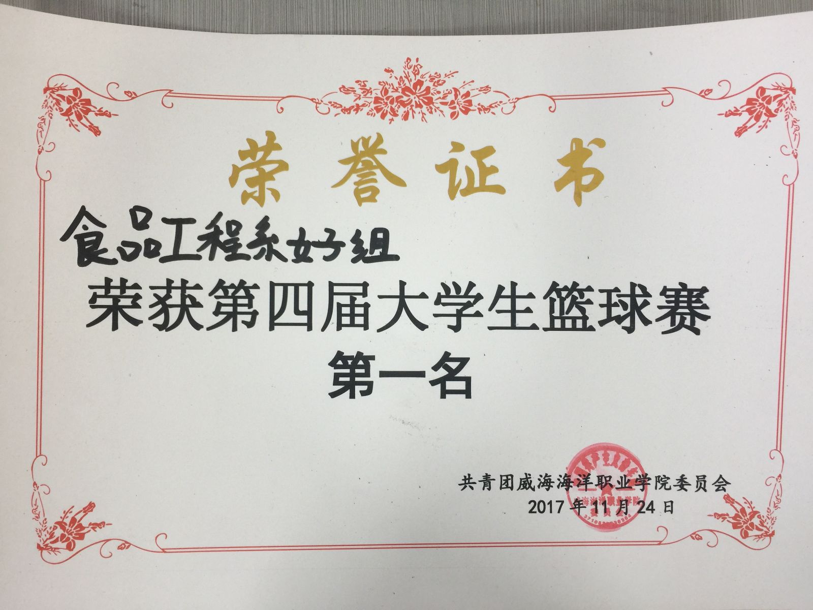 11月24日下午,威海海洋职业学院2017年第四届大学生篮球赛在东篮球场圆满落下帷幕。食品工程系篮球队一路过关斩将,最终荣获本届女子组的冠军、男子组亚军。